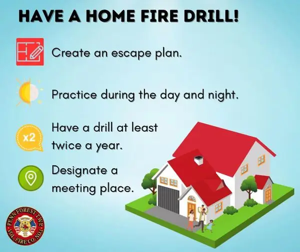 Identify and practice at least TWO escape routes out of your home in case of a fire (i.e. through the bedroom door OR out a