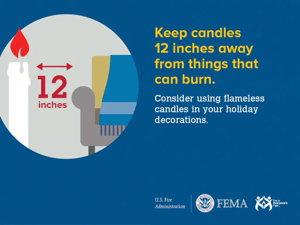 • Keep candles at least 12 inches away from anything that can burn.